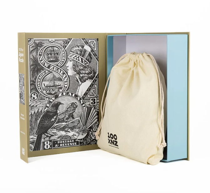 Enjoy our 1000-piece jigsaw puzzle featuring New Zealand's favourite Stamps. Packaged in a beautifully designed box, the puzzle comes with a convenient drawstring bag to keep all the pieces organised. This puzzle is a perfect way to unwind and challenge yourself while discovering the charming art and design of vintage New Zealand tourist maps.