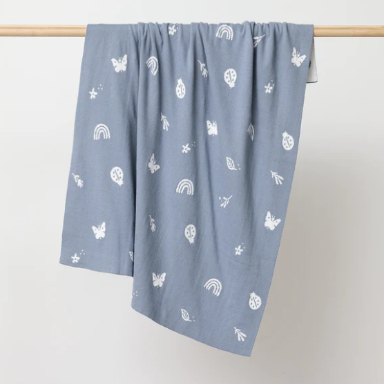 The organic cotton is soft, warm and cuddly. Perfect to use as a pram blanket, a cot layer or as a nursery décor item.