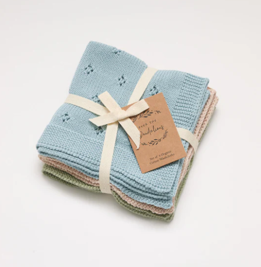 These soft and versatile wash cloths make the most wonderful and practical gift for a newborn baby. Knitted from organic cotton, they are perfect for washing faces, using in the bath, a burp cloth or for mopping up spills.